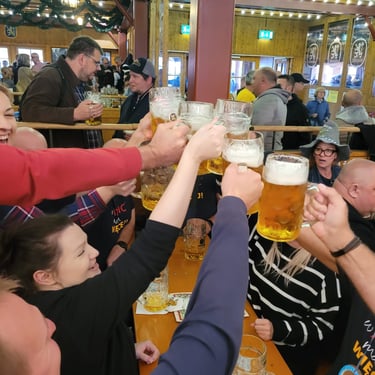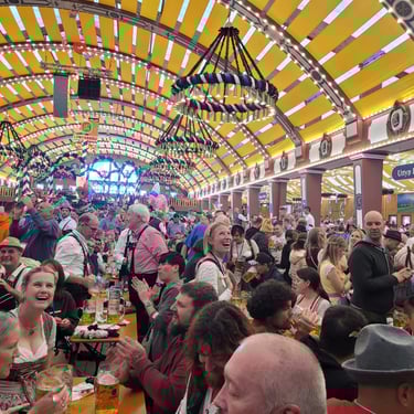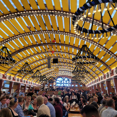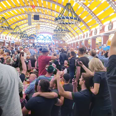 - 65 EUR (rezerwacji do jednego z namiotów piwnych na terenie Oktoberfest - w cenie wliczone 2l piwa + pół kurczaka z rożna).